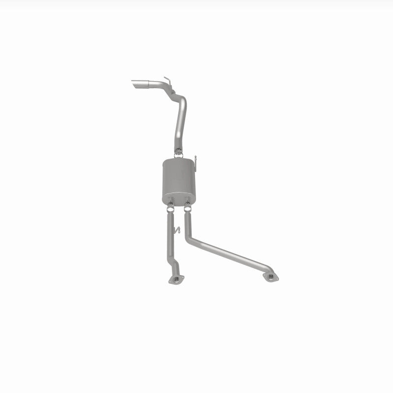 The MagnaFlow 2010-2019 Nissan Frontier Street Series Cat-Back Performance Exhaust System 15580 brings out the personality of your 4.0L 2010-2019 Nissan Frontier with our signature resonant, powerful engine tone and dyno-proven performance. Thanks to its fast-flowing, mandrel bent 3in. main piping and 1 Straight-Through mufflers ending in a Single Passenger Side Rear exit with 3.5in. Polished Welded-On Double Wall Angle Cut Folded Edge tips, this Nissan Frontier exhaust kit has the performance chops to match its sporty sound and appearance. Upgrade your ride to the next level with an exhaust that has the pipes to put other Nissan Frontier's to shame. With this system your vehicle will be producing Moderate exterior and Mild interior sound levels while leaving other cars and trucks feeling envious at every stoplight. Exhaust kit 15580 features a cat-back layout that replaces your ride's stock exhaust components from near the catalytic converter on back. Extensive 3D scanning during development has resulted in a direct-fit design that you can easily install yourself. 15580 is produced using CNC precision robotic manufacturing techniques and is backed by MagnaFlow's 1-year limited finish warranty and limited lifetime construction warranty.