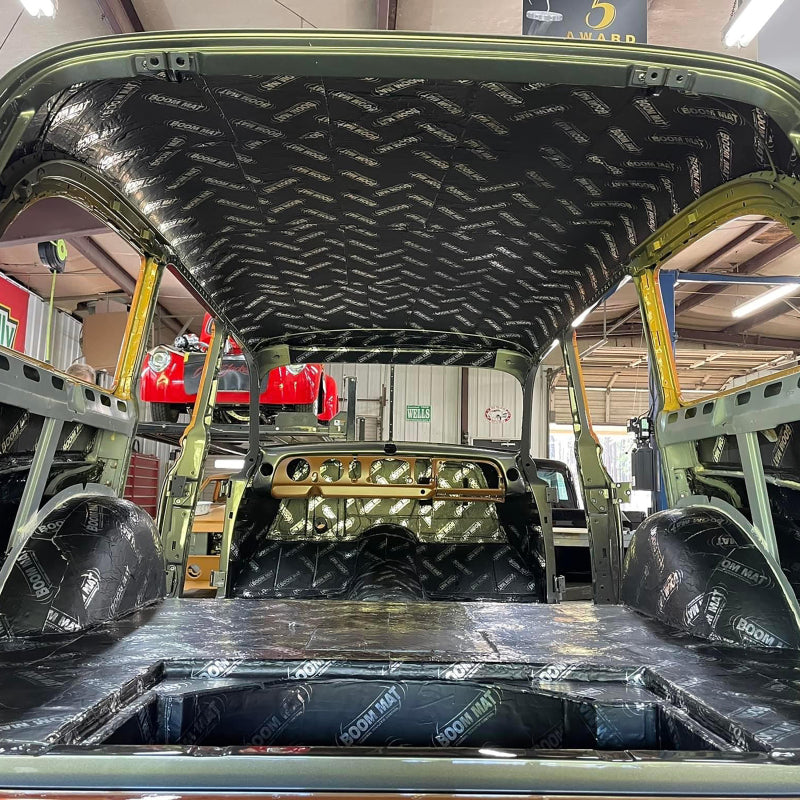 Boom Mat Vibration Damping Material is a premium quality damping material providing extreme noise damping for the most demanding commercial and sound competition applications. Interior panels vibrate and generate noise. Boom Mat stops that noise by trapping it between our thick, 4 mil aluminum stiffening top skin and the asphalt free, pure butyl, noise constraining layer. Plus worry-free no snag adhesion to any interior surface, vertical or overhead, even in the most demanding of temperature extremes. Those quality components are what makes Boom Mat Vibration Damping Material require only 25-50% coverage to get the job done. This saves weight, material cost and installation time. Easy peel plastic release liner (not a paper backing that tears) Enhances stereo performance and sound Gives you a quiet and comfortable interior Minimal prep & install time Performs in extreme temperatures Use as a first layer to control noise and dampen vibrations 10 (ten) 12.5in x 24in sheets (20 sq. ft.) 4mm thick